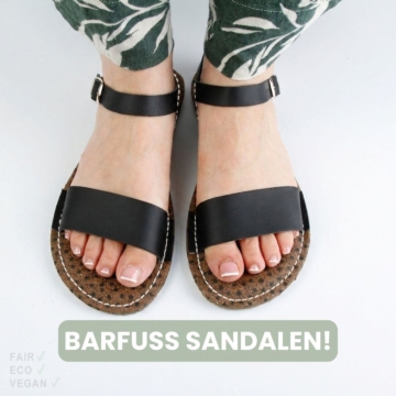 Vegane Grand Step Shoes Barfußsandalen Sandalen Vegan Fair hergestellt Hergestellt in Spanien Mit Palmblättern und Mais Modische, super leichte und flexible Barfuß-Sandalen aus mit Obermaterial auf Basis von Mais. Das bequeme Fußbett ist bezogen mit einem Material aus bedruckten Palmblättern. Die weiche Sohle aus Gummi ist sehr flexibel und passt sich jeder Bewegung an. Vorteile von Barfußschuhen: Zero Drop: Fördert eine natürliche Haltung und Bewegung. Breiter Leisten: Mehr Platz für die Zehen und bessere Fußstellung. Flexible Sohle: Unterstützt Bewegungsfreiheit und natürliche Wahrnehmung. Hergestellt in Spanien Spanien ist bekannt für eine qualitativ hochwertige Schuhproduktion. Die spanischen Schuhfabriken haben große Erfahrung mit der Herstellung von Schuhen. Die spanischen Schuhproduzent*innen legen viel Wert auf Nachhaltigkeit. Viele Fabriken verwenden umweltfreundliche Materialien und Produktionsmethoden und minimieren so die Umweltbelastung. Dies ist nicht nur gut für die Umwelt, sondern auch für die Menschen, da diese so nicht mit schädlichen Stoffen in Kontakt kommen . Auch die faire Bezahlung der Arbeiter*innen und die Arbeitsbedingungen werden hier großgeschrieben. Wer also auf der Suche nach qualitativ hochwertigen und nachhaltigen Schuhen ist, sollte sich Schuhe aus Spanien genauer anschauen. Grand Step Shoes Grand Step Shoes ist eine deutsche Schuhmarke, die für ihre hochwertigen und nachhaltigen Schuhe bekannt ist. Die Marke setzt auf innovative Materialien wie Apple Skin und natürliche Stoffe wie Baumwolle und Gummi, sowie recycelte Kunststoffe. Verwendet werden ausschließlich umweltfreundliche Materialien und Produktionsmethoden. Dabei legt Grand Step Shoes besonderen Wert auf eine faire Arbeitsbedingungen und die Einhaltung sozialer Standards. Mit ihrem modernen und dennoch zeitlosen Design sprechen die Schuhe von Grand Step Shoes eine breite Zielgruppe an und bieten eine nachhaltige Alternative für Modebewusste, die auf Qualität achten und umweltbewusst sind.