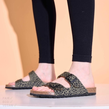 Vegane Leo Sandalen Luni mit Schnallenverschluss Vegan Fair hergestellt Hergestellt in Spanien Mit Kork Recycling Stoff Die Sandalen mit rosa animal print lassen sich durch die Schnallen schnell an die Füße anpassen. Das bequeme Fußbett ist mit dem Naturmaterial Kork überzogen. Das Obermaterial besteht aus recyceltem Plastik. Hergestellt werden sie unter europäischen Arbeitsbedingungen in Spanien. Obermaterial: Stoff aus recyceltem Plastik Innenmaterial: Aus Kunstleder und Kork Sohlen: Laufsohlen aus EVA. Mittelsohlen aus Kork. Schaft/Absatz/Extras: Flache durchgehende Sohlen. Schuhpflege: Leicht zu pflegen. Einfach nur mit einer Bürste reinigen. Bei größeren Verschmutzungen mit einem in lauwarmem Wasser getränktem Lappen reinigen. Fair | Vegan | Ökologisch: Fair: Hergestellt in Spanien. Vegan: Alle verwendeten Materialien sind ohne tierische Inhaltsstoffe. Ökologisch: Aus recyceltem Plastik und Kork. Die Schuhkartons haben kurze Transportwege innerhalb Europas. Vegane Sandalen von Grand Step Shoes Stoffe aus recyceltem Plastik Recyceltes Plastik hat viele Vorteile gegenüber neuen Plastikprodukten. Es spart Ressourcen und reduziert Abfall. Es hat meistens auch eine geringere Umweltbelastung, da kein neues Öl gefördert werden muss und so der Produktionsprozess weniger Energie verbraucht und weniger Treibhausgase emittiert. Für viele Anwendung ist die Qualität des recycelten Plastiks völlig ausreichend. Textile Stoffe aus recyceltem Plastik sind allerdings häufig teurer als welche aus neuen Kunststoffen, obwohl die recycelte Variante weniger Rohmaterial und oft auch weniger Energie benötigt. Hergestellt in Spanien Spanien ist bekannt für eine qualitativ hochwertige Schuhproduktion. Die spanischen Schuhfabriken haben große Erfahrung mit der Herstellung von Schuhen. Die spanischen Schuhproduzent*innen legen viel Wert auf Nachhaltigkeit. Viele Fabriken verwenden umweltfreundliche Materialien und Produktionsmethoden und minimieren so die Umweltbelastung. Dies ist nicht nur gut für die Umwelt, sondern auch für die Menschen, da diese so nicht mit schädlichen Stoffen in Kontakt kommen . Auch die faire Bezahlung der Arbeiter*innen und die Arbeitsbedingungen werden hier großgeschrieben. Wer also auf der Suche nach qualitativ hochwertigen und nachhaltigen Schuhen ist, sollte sich Schuhe aus Spanien genauer anschauen. Grand Step Shoes Grand Step Shoes ist eine deutsche Schuhmarke, die für ihre hochwertigen und nachhaltigen Schuhe bekannt ist. Die Marke setzt auf innovative Materialien wie Apple Skin und natürliche Stoffe wie Baumwolle und Gummi, sowie recycelte Kunststoffe. Verwendet werden ausschließlich umweltfreundliche Materialien und Produktionsmethoden. Dabei legt Grand Step Shoes besonderen Wert auf eine faire Arbeitsbedingungen und die Einhaltung sozialer Standards. Mit ihrem modernen und dennoch zeitlosen Design sprechen die Schuhe von Grand Step Shoes eine breite Zielgruppe an und bieten eine nachhaltige Alternative für Modebewusste, die auf Qualität achten und umweltbewusst sind.