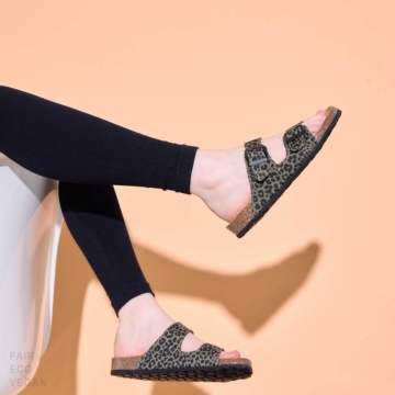 Vegane Leo Sandalen Luni mit Schnallenverschluss Vegan Fair hergestellt Hergestellt in Spanien Mit Kork Recycling Stoff Die Sandalen mit rosa animal print lassen sich durch die Schnallen schnell an die Füße anpassen. Das bequeme Fußbett ist mit dem Naturmaterial Kork überzogen. Das Obermaterial besteht aus recyceltem Plastik. Hergestellt werden sie unter europäischen Arbeitsbedingungen in Spanien. Obermaterial: Stoff aus recyceltem Plastik Innenmaterial: Aus Kunstleder und Kork Sohlen: Laufsohlen aus EVA. Mittelsohlen aus Kork. Schaft/Absatz/Extras: Flache durchgehende Sohlen. Schuhpflege: Leicht zu pflegen. Einfach nur mit einer Bürste reinigen. Bei größeren Verschmutzungen mit einem in lauwarmem Wasser getränktem Lappen reinigen. Fair | Vegan | Ökologisch: Fair: Hergestellt in Spanien. Vegan: Alle verwendeten Materialien sind ohne tierische Inhaltsstoffe. Ökologisch: Aus recyceltem Plastik und Kork. Die Schuhkartons haben kurze Transportwege innerhalb Europas.   Vegane Sandalen von Grand Step Shoes Stoffe aus recyceltem Plastik Recyceltes Plastik hat viele Vorteile gegenüber neuen Plastikprodukten. Es spart Ressourcen und reduziert Abfall. Es hat meistens auch eine geringere Umweltbelastung, da kein neues Öl gefördert werden muss und so der Produktionsprozess weniger Energie verbraucht und weniger Treibhausgase emittiert. Für viele Anwendung ist die Qualität des recycelten Plastiks völlig ausreichend. Textile Stoffe aus recyceltem Plastik sind allerdings häufig teurer als welche aus neuen Kunststoffen, obwohl die recycelte Variante weniger Rohmaterial und oft auch weniger Energie benötigt. Hergestellt in Spanien Spanien ist bekannt für eine qualitativ hochwertige Schuhproduktion. Die spanischen Schuhfabriken haben große Erfahrung mit der Herstellung von Schuhen. Die spanischen Schuhproduzent*innen legen viel Wert auf Nachhaltigkeit. Viele Fabriken verwenden umweltfreundliche Materialien und Produktionsmethoden und minimieren so die Umweltbelastung. Dies ist nicht nur gut für die Umwelt, sondern auch für die Menschen, da diese so nicht mit schädlichen Stoffen in Kontakt kommen . Auch die faire Bezahlung der Arbeiter*innen und die Arbeitsbedingungen werden hier großgeschrieben. Wer also auf der Suche nach qualitativ hochwertigen und nachhaltigen Schuhen ist, sollte sich Schuhe aus Spanien genauer anschauen. Grand Step Shoes Grand Step Shoes ist eine deutsche Schuhmarke, die für ihre hochwertigen und nachhaltigen Schuhe bekannt ist. Die Marke setzt auf innovative Materialien wie Apple Skin und natürliche Stoffe wie Baumwolle und Gummi, sowie recycelte Kunststoffe. Verwendet werden ausschließlich umweltfreundliche Materialien und Produktionsmethoden. Dabei legt Grand Step Shoes besonderen Wert auf eine faire Arbeitsbedingungen und die Einhaltung sozialer Standards. Mit ihrem modernen und dennoch zeitlosen Design sprechen die Schuhe von Grand Step Shoes eine breite Zielgruppe an und bieten eine nachhaltige Alternative für Modebewusste, die auf Qualität achten und umweltbewusst sind.
