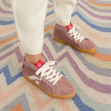 Taylor Cord Sneaker rose Vegan Fair hergestellt Hergestellt in Spanien Mit Bio-Baumwolle und Gummi Die rosafarbene veganen High Top Sneaker von Grand Step Shoes haben ein Obermaterial aus breit geripptem Cordstoff . Die 5 Loch Schuhe sind frei von tierischen Produkten und bieten durch die soften Sohlen einen hohen Tragekomfort. Die knöchelhohe Form und das auffällige Corddesign verleihen jedem Outfit das gewisse Extra. Obermaterial: Polyester. Innenmaterial: Bio-Baumwolle. Die Innensohlen sind aus einem Schaum auf Zuckerrohrbasis und mit Baumwolle beschichtet. Sohlen: Laufsohlen aus Gummi. Schaft/Absatz/Extras: Flache durchgehende Sohlen. Schafthöhe bei Größe 40 ca. 10,5cm. Die Innensohlen sind fest eingeklebt. Die Schnürsenkel sind aus recycelter Baumwolle und die Aufgenähten Etiketten aus recyceltem Polyester. Schuhpflege: Leicht zu pflegen. Einfach nur mit einer Bürste reinigen. Bei größeren Verschmutzungen mit einem in lauwarmem Wasser getränktem Lappen reinigen. Fair | Vegan | Ökologisch: Fair: Hergestellt in Spanien. Vegan: Alle verwendeten Materialien sind ohne tierische Inhaltsstoffe. Ökologisch: Aus Bio-Baumwolle und Gummi. Die Schuhkartons haben kurze Transportwege innerhalb Europas. Hergestellt in Spanien Spanien ist bekannt für eine qualitativ hochwertige Schuhproduktion. Die spanischen Schuhfabriken haben große Erfahrung mit der Herstellung von Schuhen. Die spanischen Schuhproduzent*innen legen viel Wert auf Nachhaltigkeit. Viele Fabriken verwenden umweltfreundliche Materialien und Produktionsmethoden und minimieren so die Umweltbelastung. Dies ist nicht nur gut für die Umwelt, sondern auch für die Menschen, da diese so nicht mit schädlichen Stoffen in Kontakt kommen . Auch die faire Bezahlung der Arbeiter*innen und die Arbeitsbedingungen werden hier großgeschrieben. Wer also auf der Suche nach qualitativ hochwertigen und nachhaltigen Schuhen ist, sollte sich Schuhe aus Spanien genauer anschauen. Grand Step Shoes Grand Step Shoes ist eine deutsche Schuhmarke, die für ihre hochwertigen und nachhaltigen Schuhe bekannt ist. Die Marke setzt auf innovative Materialien wie Apple Skin und natürliche Stoffe wie Baumwolle und Gummi. Verwendet werden ausschließlich umweltfreundliche Materialien und Produktionsmethoden. Dabei legt Grand Step Shoes besonderen Wert auf eine faire Arbeitsbedingungen und die Einhaltung sozialer Standards. Mit ihrem modernen und dennoch zeitlosen Design sprechen die Schuhe von Grand Step Shoes eine breite Zielgruppe an und bieten eine nachhaltige Alternative für Modebewusste, die auf Qualität achten und umweltbewusst sind.
