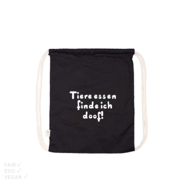 Gym Bag Tiere essen finde ich doof Zuziehbeutel/Rucksack aus fair gehandelter Biobaumwolle. Größe ca. BxH 31x38cm. Mit eingenähten Fairtrade Cotton & GOTS Etiketten. Der Druck ist aus phthalatfreier Farbe und ist Oeko-Tex Standart 100 zertifiziert.