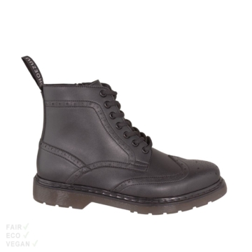 Stilvolles Design aus Mikrofasern Bequeme 7 Loch Schnürboots in kultigem Design. Ob Dancefloor, Büro oder Demo, die Allrounder aus High Tech Mikrofasern sind für das ganze Jahr geeignet. Obermaterial: High Tech Mikrofasern, CO2-klimaneutral hergestellt Wasserabweisend und wasserbeständig Atmungsaktiv Sehr widerstandsfähig Schadstoffgeprüft und frei von gesundheitsschädlichen Stoffen. Oeko-Tex-Standard 100 zertifiziert Innenmaterial: High Tech Mikrofasern, CO2-klimaneutral hergestellt Kann bis zum 8fachen des eigenen Gewichtes an Wasser aufnehmen Sehr atmungsaktiv | Wärmeregulierend Antibakteriell | Antimikrobiell | Hypoallergen Schadstoffgeprüft und frei von gesundheitsschädlichen Stoffen. Oeko-Tex-Standard 100 zertifiziert Sohlen: Die Sohlen sind aus Kunststoff und wiederbesohlbar. Schaft/Absatz/Extras: Schafthöhe bei einer mittleren Größe ca. 17cm. Absatzhöhe hinten ca. 2,7cm. Reißverschlüsse an den Schaftinnenseiten. Die Innensohlen sind herausnehmbar. Pflege: Leicht zu pflegen. Imprägnieren nicht notwendig. Einfach nur reinigen und ggf., zum entfernen von Kratzern und Flecken, ab und zu mit Schuhcreme wie Black Polish behandeln. Die Schuhcreme schützt auch vor der Anhaftung von Schmutz und vermindert die Bildung von Salzrändern. Bitte Pflegemittel gleich mitbestellen . Fair/Vegan/Ökologisch: Fair: Hergestellt in Portugal. Vegan: Alle verwendeten Materialien sind ohne tierische Inhaltstoffe. Ökologisch: Ohne Leder, daher auch frei von Chrom VI. Kurze Transportwege. Die lederfreien 7 Loch Unisex Boots gibt es in Damen-, Herren- bzw. Diversgrößen von 37 bis 46.