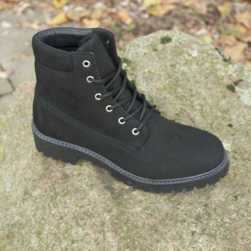 Klassisches Workboot-Design trifft auf moderne Materialien Robuste 6 Loch Schnürboots in klassischem Workboot-Design. Die Allrounder aus Wildlederimitat sind für das ganze Jahr geeignet. Für eine bessere Wetterfestigkeit sollten die Stiefel imprägniert werden. Obermaterial: High Tech Mikrofasern, CO2-klimaneutral hergestellt Atmungsaktiv Sehr widerstandsfähig Schadstoffgeprüft und frei von gesundheitsschädlichen Stoffen. Innenmaterial: High Tech Mikrofasern, CO2-klimaneutral hergestellt Kann bis zum 8fachen des eigenen Gewichtes an Wasser aufnehmen Sehr atmungsaktiv | Wärmeregulierend Antibakteriell | Antimikrobiell | Hypoallergen Schadstoffgeprüft und frei von gesundheitsschädlichen Stoffen. Sohlen: Die Sohlen sind aus Gummi und wiederbesohlbar. Schaft/Absatz/Extras: Schafthöhe bei einer mittleren Größe ca. 14,5cm. Absatzhöhe hinten ca. 2,7cm. Die Innensohlen sind herausnehmbar. Pflege: Leicht zu pflegen. Einfach mit einer weichen Bürste säubern. Imprägnieren mit einem handelsüblichen Spray empfohlen . Fair/Vegan/Ökologisch: Fair: Hergestellt in Portugal. Vegan: Alle verwendeten Materialien sind ohne tierische Inhaltsstoffe. Ökologisch: Ohne Leder, daher auch frei von Chrom VI. Kurze Transportwege. Hergestellt in Portugal Portugal ist ein bekannter Standort für qualitativ hochwertige Schuhproduktion. Die langjährige Erfahrung der meist kleinen Schuhfabriken zeigt sich in der Herstellung von Schuhen mit hoher Qualität. Die Schuhproduzenten haben ein starkes Engagement für den Umweltschutz und die Nachhaltigkeit. Viele Fabriken verwenden umweltfreundliche Materialien und Produktionsmethoden, um die Umweltbelastung zu minimieren. Dies trägt auch zur Gesundheit der Menschen bei, indem schädliche Stoffe vermieden werden. Faire Bezahlung der Arbeiter*innen und gute Arbeitsbedingungen sind ebenfalls wichtig. Shoezuu Vegan Shoezuu Vegan ist eine deutsche Marke, die sich auf die Herstellung von veganen Schuhen spezialisiert hat und diese unter europäischen Arbeits- und Umweltbedingungen in kleinen Werken in Portugal und Spanien herstellen lässt. Die verwendeten Materialien wie Oberstoffe, Futter und Sohlen werden ebenfalls in Spanien und Portugal produziert. Wer auf der Suche nach stilvollen, bequemen und umweltfreundlichen Schuhen ist, sollte sich die veganen Schuhe von Shoezuu ansehen.