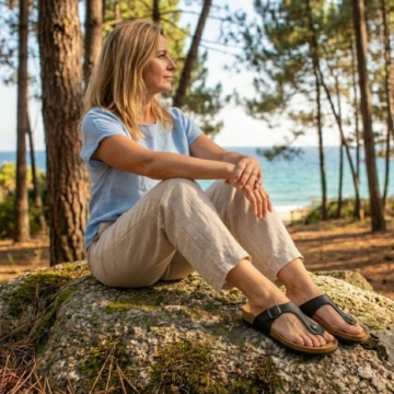 Must-have für den Sommer Zehentrenner Sandalen in zeitlosem Design, aber aus hochwertigen Mikrofasern. Obermaterial: High Tech Mikrofasern, CO2-klimaneutral hergestellt Wasserabweisend und wasserbeständig Sehr widerstandsfähig Schadstoffgeprüft und frei von gesundheitsschädlichen Stoffen. Innenmaterial: High Tech Mikrofasern, CO2-klimaneutral hergestellt Antibakteriell | Antimikrobiell | Hypoallergen Schadstoffgeprüft und frei von gesundheitsschädlichen Stoffen. Sohlen: Die Sohlen sind aus PU-Schaum und dadurch besonders leicht und flexibel. Schaft/Absatz/Extras: Flache durchgehende Sohlen. Pflege: Leicht zu pflegen. Einfach nur reinigen und ggf., zum entfernen von Kratzern und Flecken, ab und zu mit Schuhcreme wie Black Polish behandeln. Fair/Vegan/Ökologisch: Fair: Hergestellt in Portugal. Vegan: Alle verwendeten Materialien sind ohne tierische Inhaltsstoffe. Ökologisch: Ohne Leder, daher auch frei von Chrom VI und anderen für die Lederbehandlung verwendeten Stoffen. Die Schuhkartons und haben kurze Transportwege innerhalb Europas. Die lederfreien Sandalen gibt es in Unisexgrößen von 37-45.