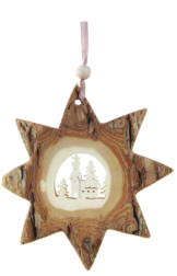 „Rührende Rindenanhänger“ Heilige Familie mit Sternschnuppe als Glocke
