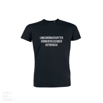 T-Shirt Linksgrünversiffterkörnerfressender Gutmensch Shoezuu Textilien werden in unserem Lager vom Shoezuu-Team bedruckt. Unsere Drucke sind phthalatfrei, frei von PVC und BPAs und sie sind OEKO-TEX-Standard 100 zertifiziert. Die unbedruckten Textilien bekommen wir vom belgischen Label Stanley/Stella. Stanley/Stella ist Fair Wear Foundation zertifiziert und hat den Leader Status. Die Bio-Baumwolle ist GOTS zertifiziert und recycelte Materialien sind GRS Global Recycled Standard zertifiziert. Alle Textilien sind OEKO-TEX-Standard 100 zertifiziert. Wir empfehlen Textilien bei 30 Grad zu waschen. Um eine maximale Langlebigkeit der Textilien zu gewährleisten sollte auf bügeln, trocknen im Wäschetrockner, Bleichmittel und Weichspüler verzichtet werden. Selbstverständlich sind Drucke und Textilien vegan.