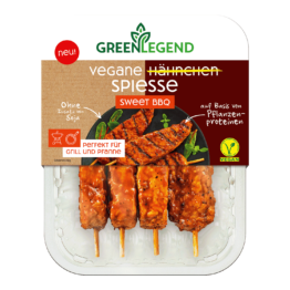 Green Legend VEGANE HÄHNCHEN SPIESSE Sweet BBQ, 160g