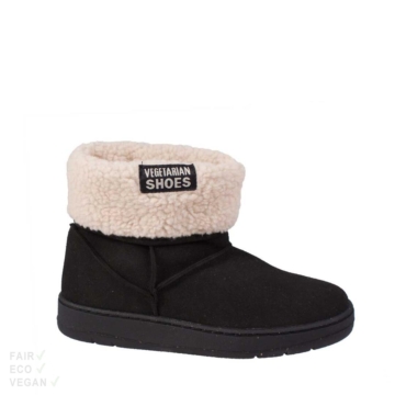 Vegetarian Shoes Snugge Boot Black Das Obermaterial der Pull On Boots ist aus einem weichem Fake Suede. Innen sind die Schuhe komplett mit einem dicken Futter ausgestattet. Die Schäfte der Boots sind bei einer mittleren Größe ca. 19cm hoch. Damit die Schuhe besser Schmutz und Wasser abweisen, können diese mit Imprägnierspray behandelt werden. Seit 1990 stellt Robin Webb von Vegetarian Shoes aus Großbritannien vegane Schuhe her. Alle Vegetarian Shoes sind vegan und werden in Westeuropa hergestellt.
